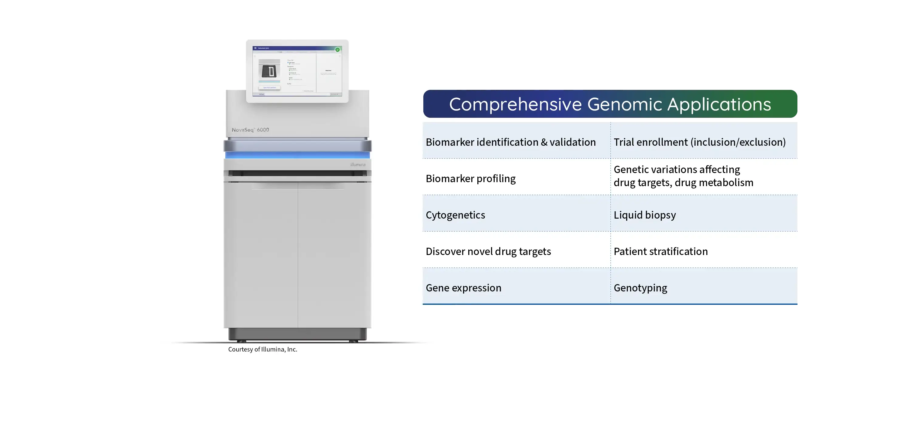 We offer a comprehensive suite of genomic technologies and data-driven solutions, including: