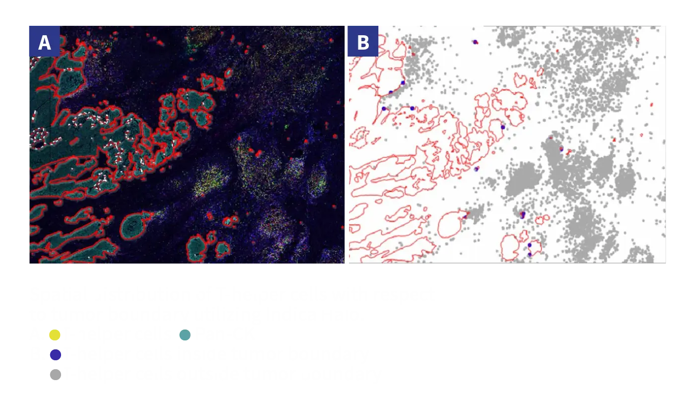 - Image Analysis by Indica HALO: single cell quantitative cellular classification, spatial analysis including nearest neighbors, and density heatmaps, combine analysis and results – specific compartment for same slide or serial slides.